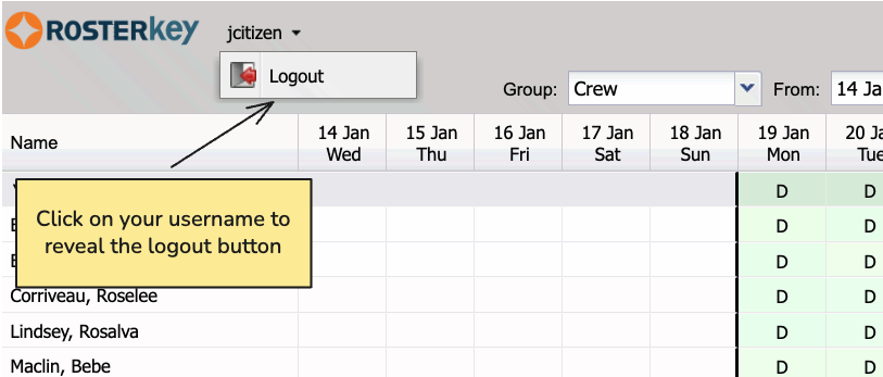 Clicking the ROSTERkey logo on any page will return you to the ROSTERkey homepage.
