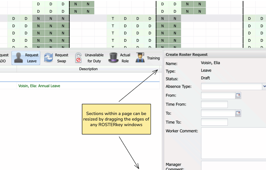 Within ROSTERkey, windows can be dragged and resized with ease, just "grab" and hold the edge of a window in the Roster View with your mouse cursor, and drag!
