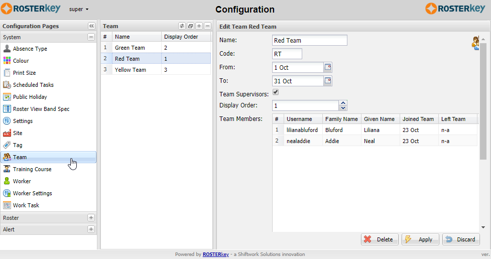 - Team Supervisors: this flag indicates whether approvals for changes to the roster for the team members can be approved by any supervisor/manager or only those that are also in the team.