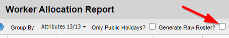 ![]() | Generate data from the raw roster only, i.e. with no changes applied. This is useful to compare what was rostered against what was actually worked. |