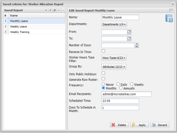 N.B. The Worker Allocation Report is configured for Saved Reports and can be scheduled.