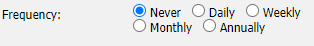 Some reports are able to be scheduled to run automatically. To set this up, you create a Saved Report for the specific report that you wish to schedule and then select one of the Frequency options. If the report is unavailable for automatic running then the Frequency options will not show.