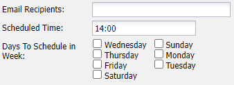 | Weekly | This report will run on a periodic weekly schedule.![]() | Days To Schedule in Week: Tick which days of a week on which you wish this report to run. The report will then run, every week, on those days, at the time specified. |