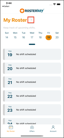 Once the page has finished loading, the loading icon will disappear and the scheduled shifts will be displayed.