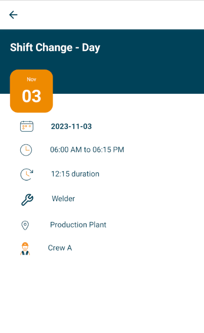 In the Shift List View, selecting a shift (see below) will switch to the Shift Detail View.