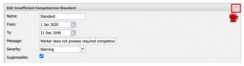 The Audit Log button appears across many toolbars in ROSTERkey wherever a record can be edited (for example, Settings, Roles, Locations, Shift Definitions, and more!). Look for the Audit Log icon in the toolbar of the form you are viewing. Pictured below:
