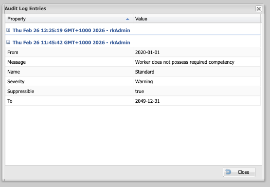 The Audit Log allows you to see a history of changes that have been made to a record in ROSTERkey. It shows who made each change, when they made it, and what was changed.